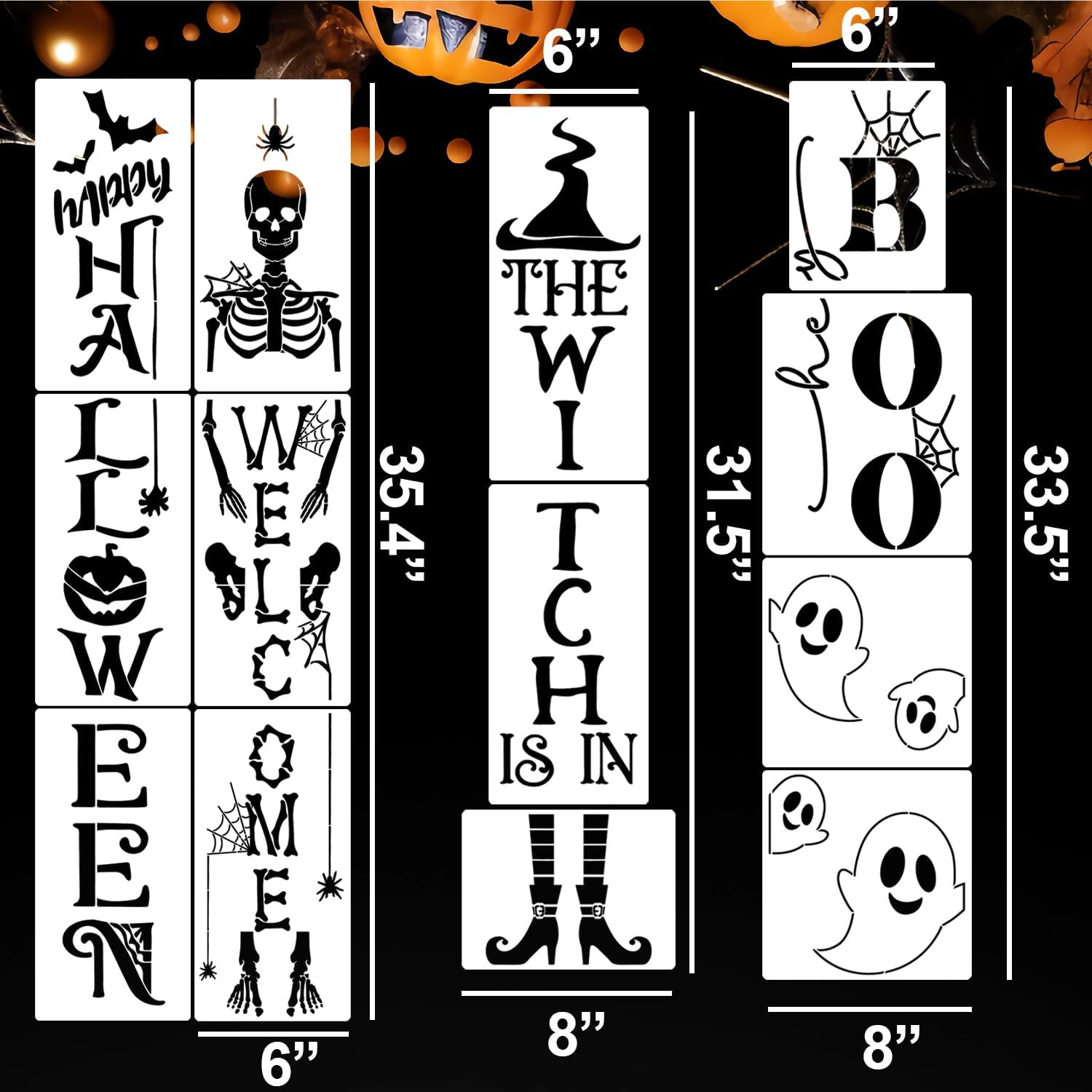 - Halloween Porch Stencils:Welcome your guests with a ghoulishly delightful touch this Halloween season! Combine three or four templates into a vertical Halloween porch sign.DIY your Porch Decor!