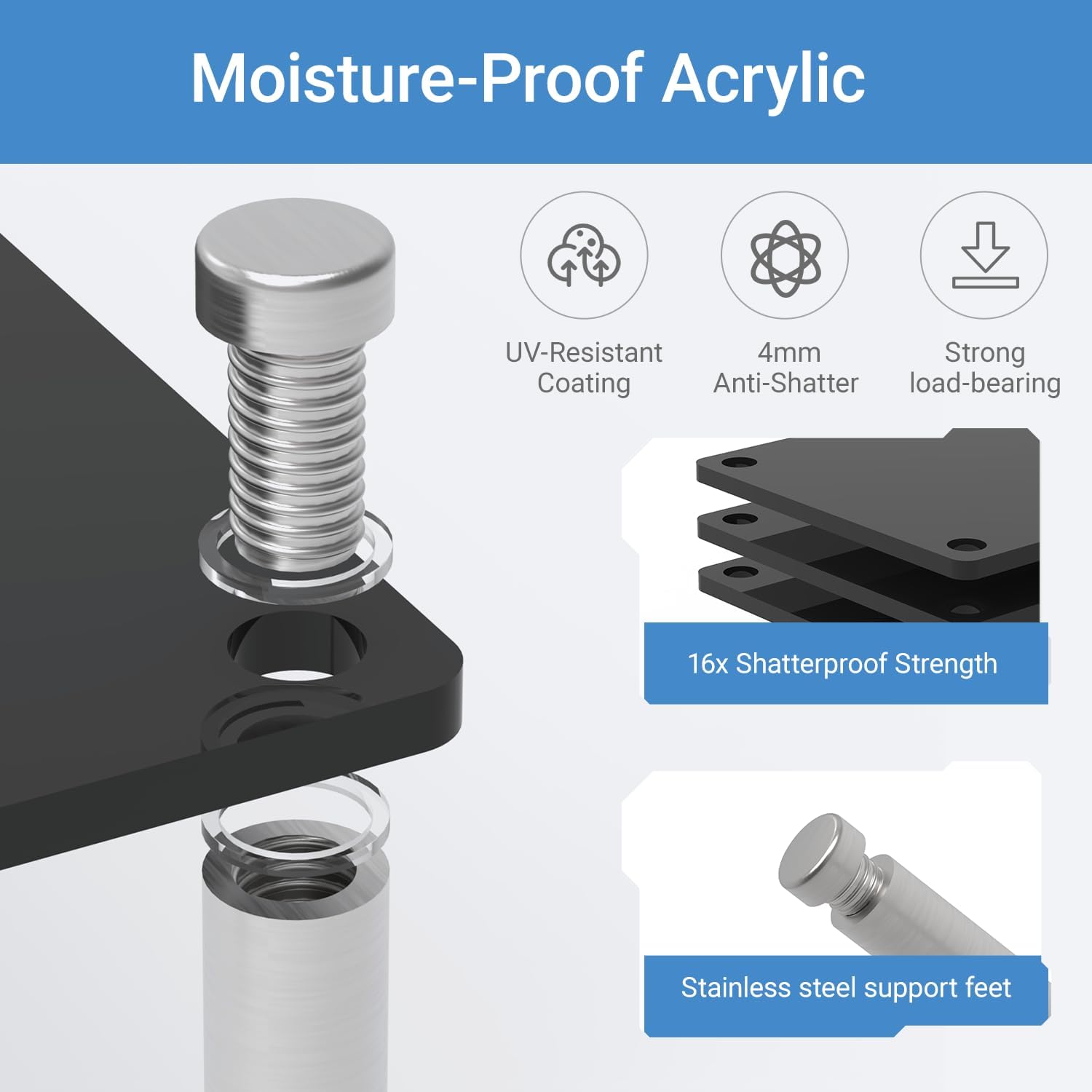 - Tool-Free Assembly – No screwdriver needed! Assemble this 3-tier riser in minutes using pre-cut acrylic panels and stainless steel supports. Disassembles flat for storage.