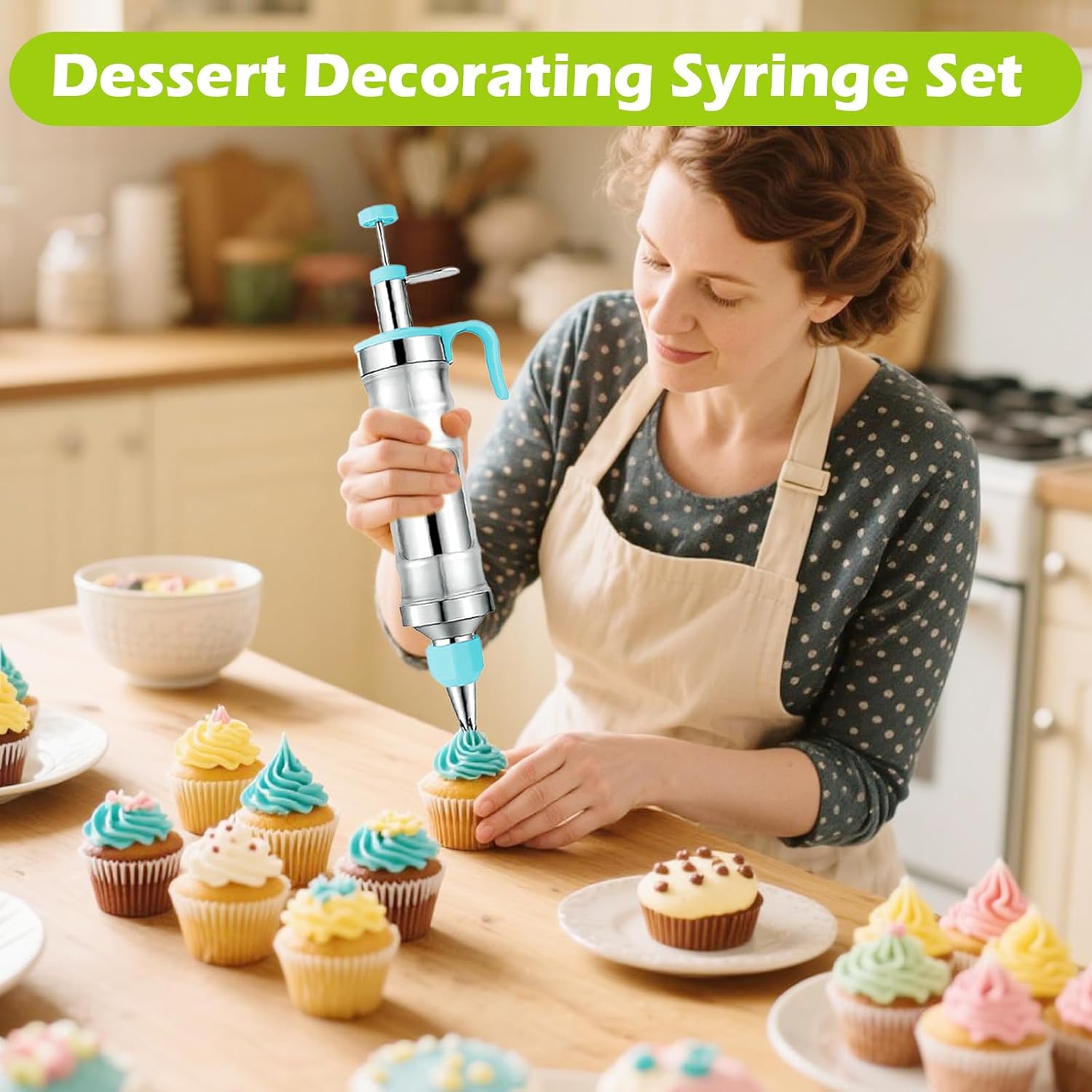 Suuker Dessert Decorating Syringe Set, Frosting Piping Kit Stainless Steels Cake Decorating Tools with 54 Piping Tips, 9 Silicone Baking Cups, Cupcake Decorating Kit