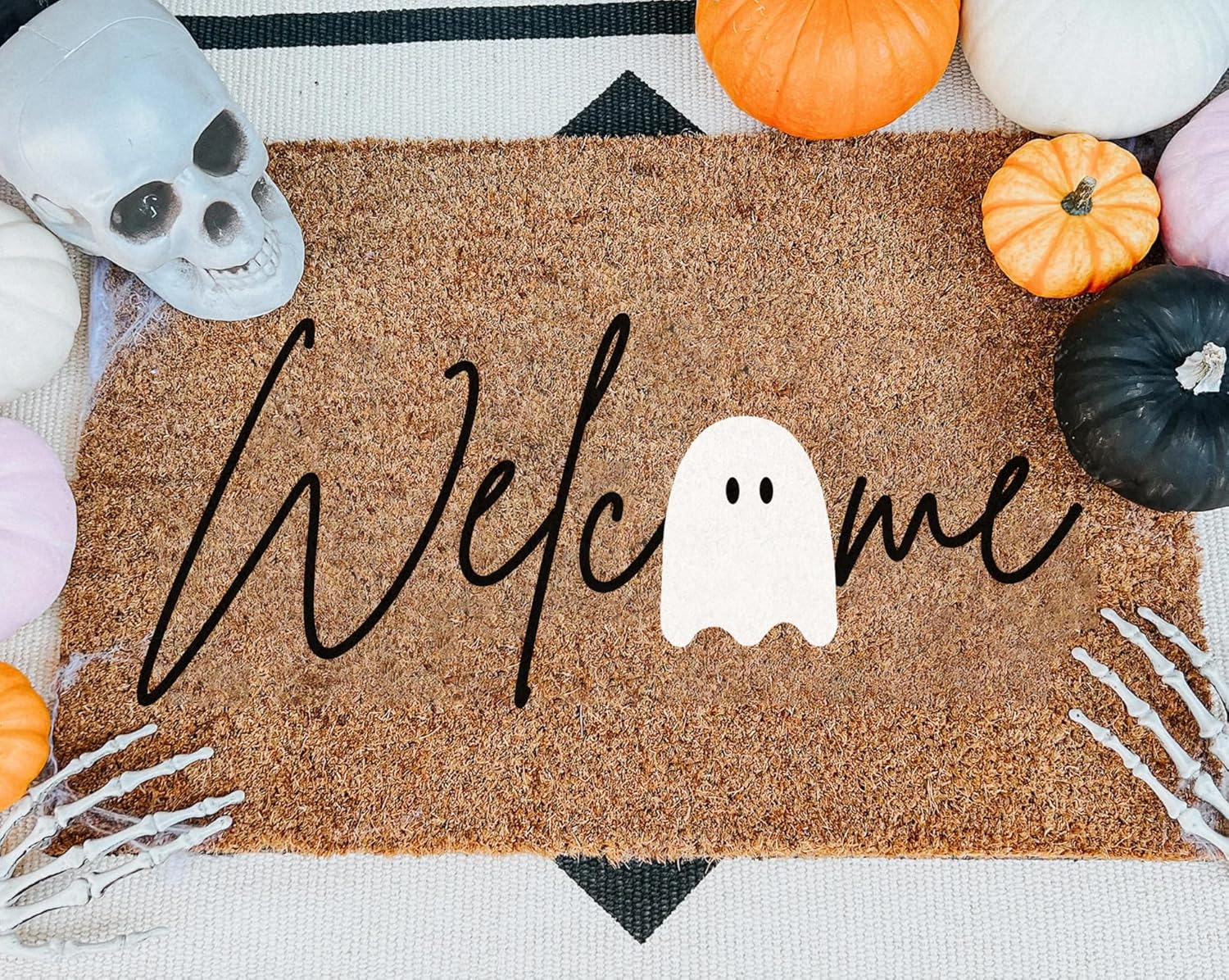 Halloween Stencils for Door Mats Welcome Ghost Stencil Reusable Stay Spooky Halloween Stencils for Painting on Wood Sign Doormats Fabrics DIY Crafts Decor