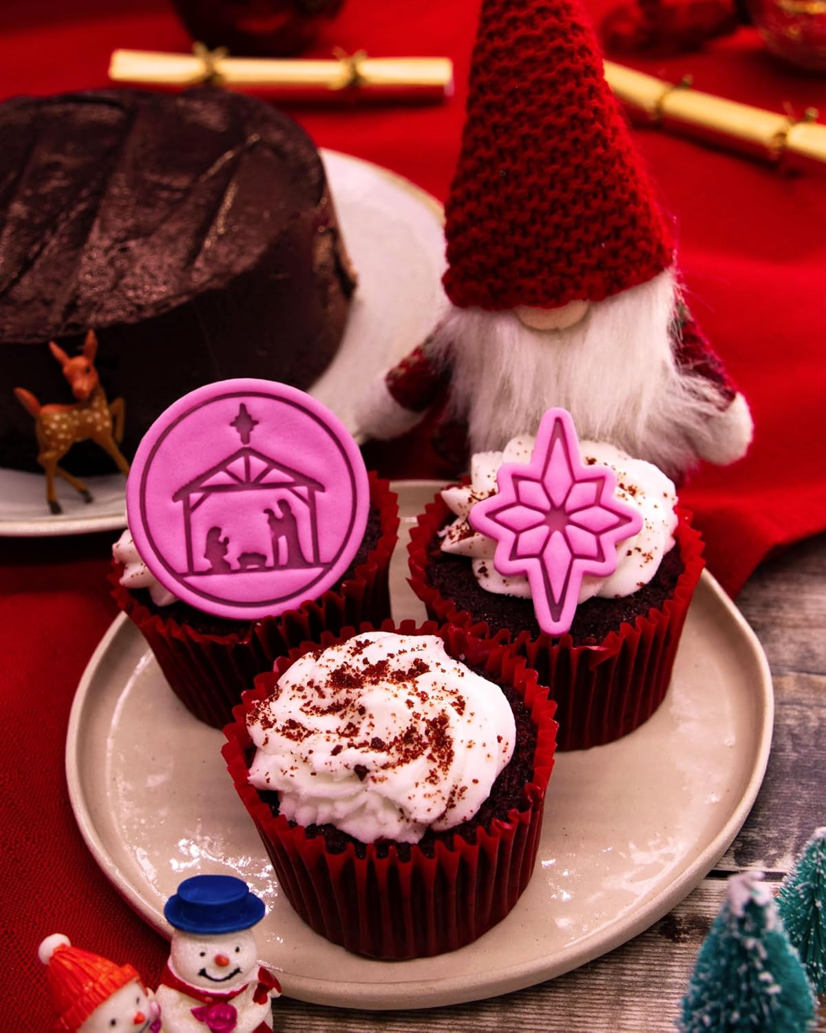 BAKERLOGY Holy Night – Mini Nativity Scene & Star of Bethlehem Cookie Cutter and Stamp Set (2") – Traditional Christmas Symbols for Holiday Baking and Seasonal Crafts