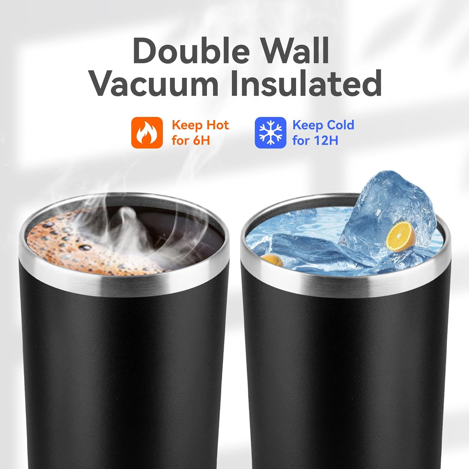 - Dual Vacuum Insulation: This skinny tumbler can keep ice cubes from melting for 12 hours and coffee hot for 6 hours—by blocking 99% of heat transfer through a vacuum insulation layer, while preventing external condensation.
