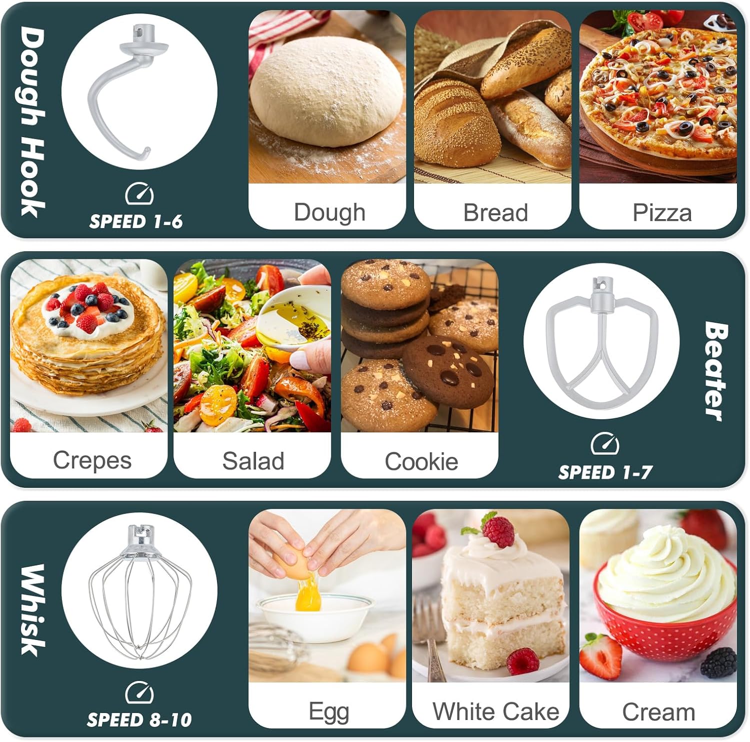 - 【Durable Attachments & Dishwasher Safe】As a versatile food mixer it includes coated aluminum dough hooks & beaters, plus a stainless steel whisk for lasting performance. All attachments snap on and off in seconds for quick changes during baking. The stainless steel bowl and all attachments are dishwasher safe (top rack recommended), ensuring quick and hassle-free cleanup.