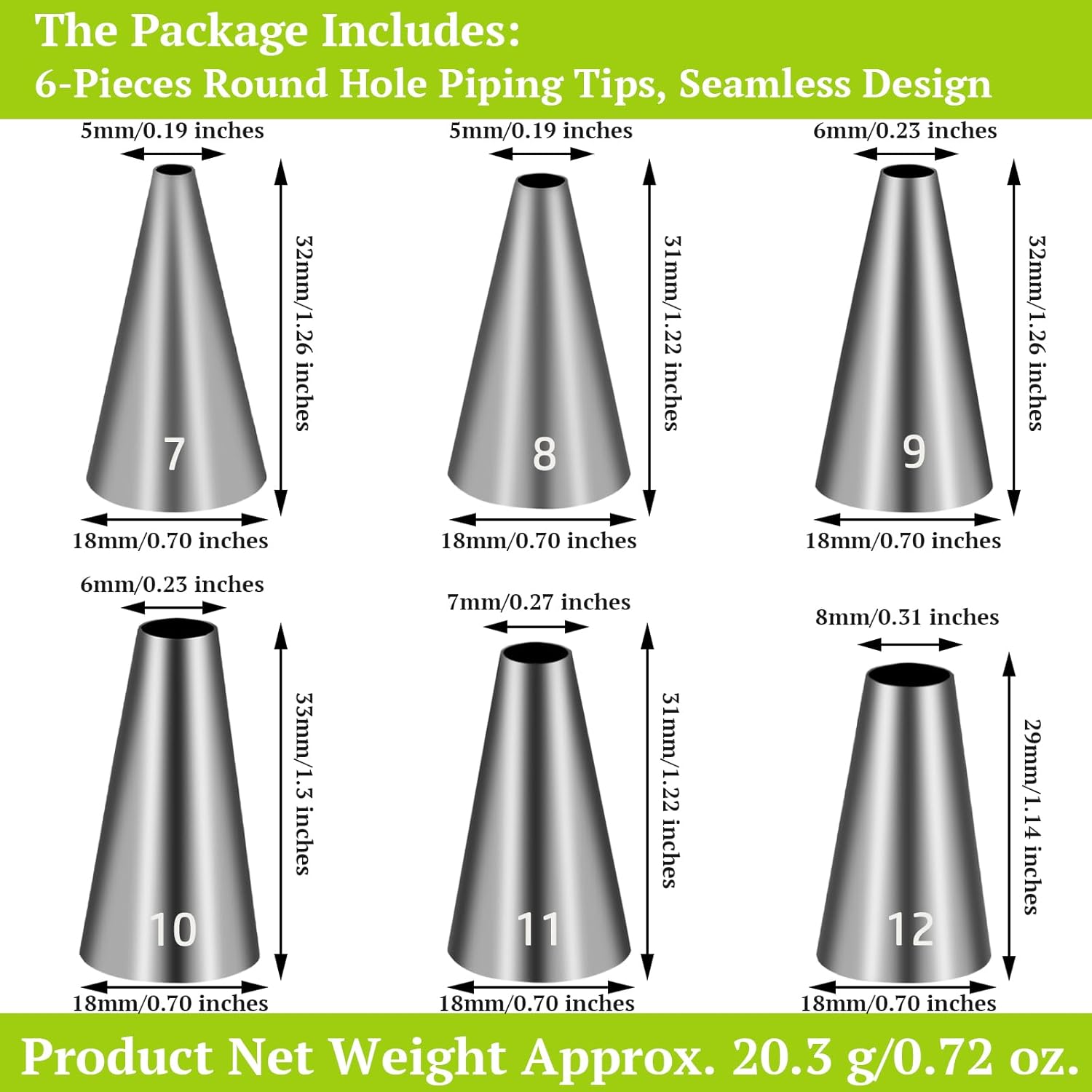 - Package List: You will receive 6 different sizes of round icing tips to create various designs on cakes and biscuits