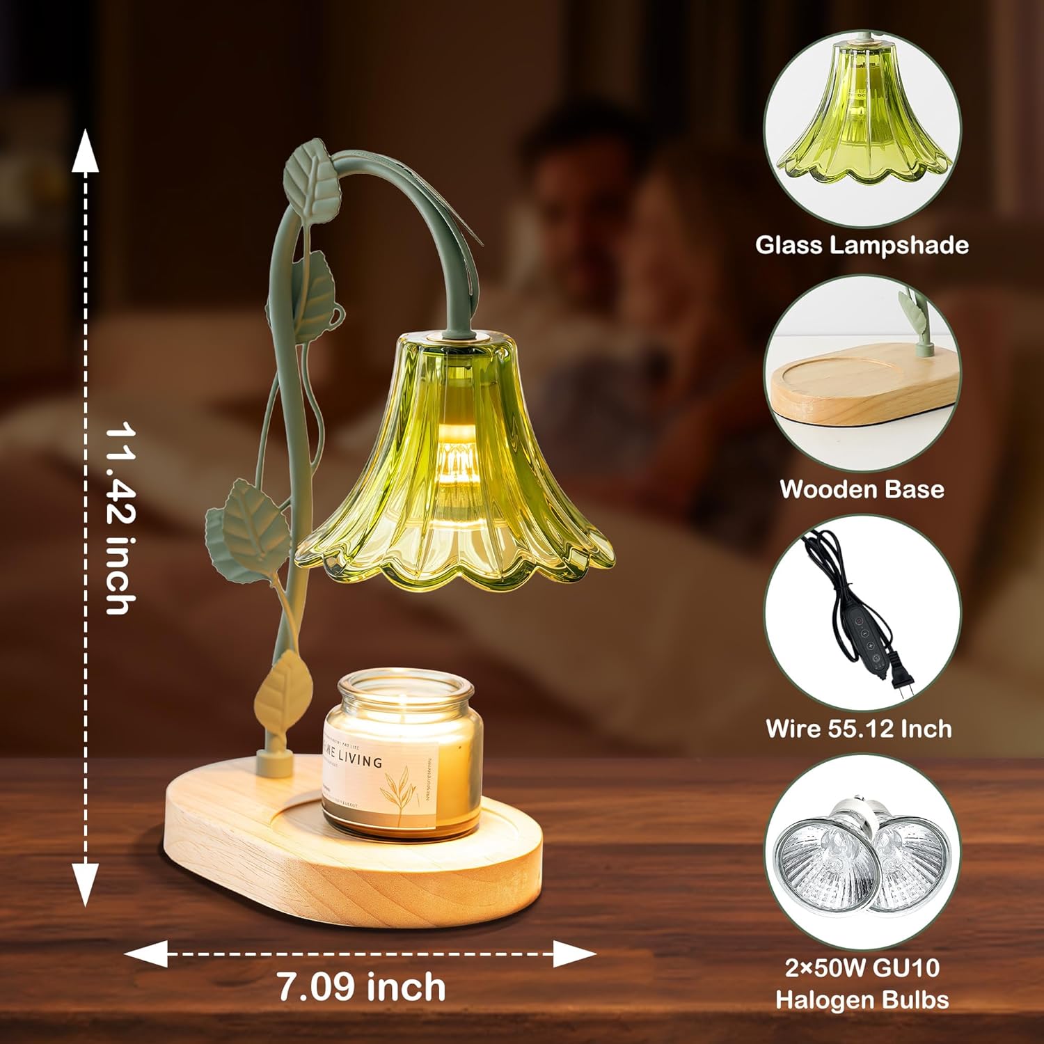 Flower Candle Warmer Lamp with Timer,Dimmable Candle Lamp Warmer,Adjustable Height Candle Warmer for All Jar Candles,Bedroom Living Room Home Decor Aesthetic Christmas Birthday Gifts (Morning Glory)