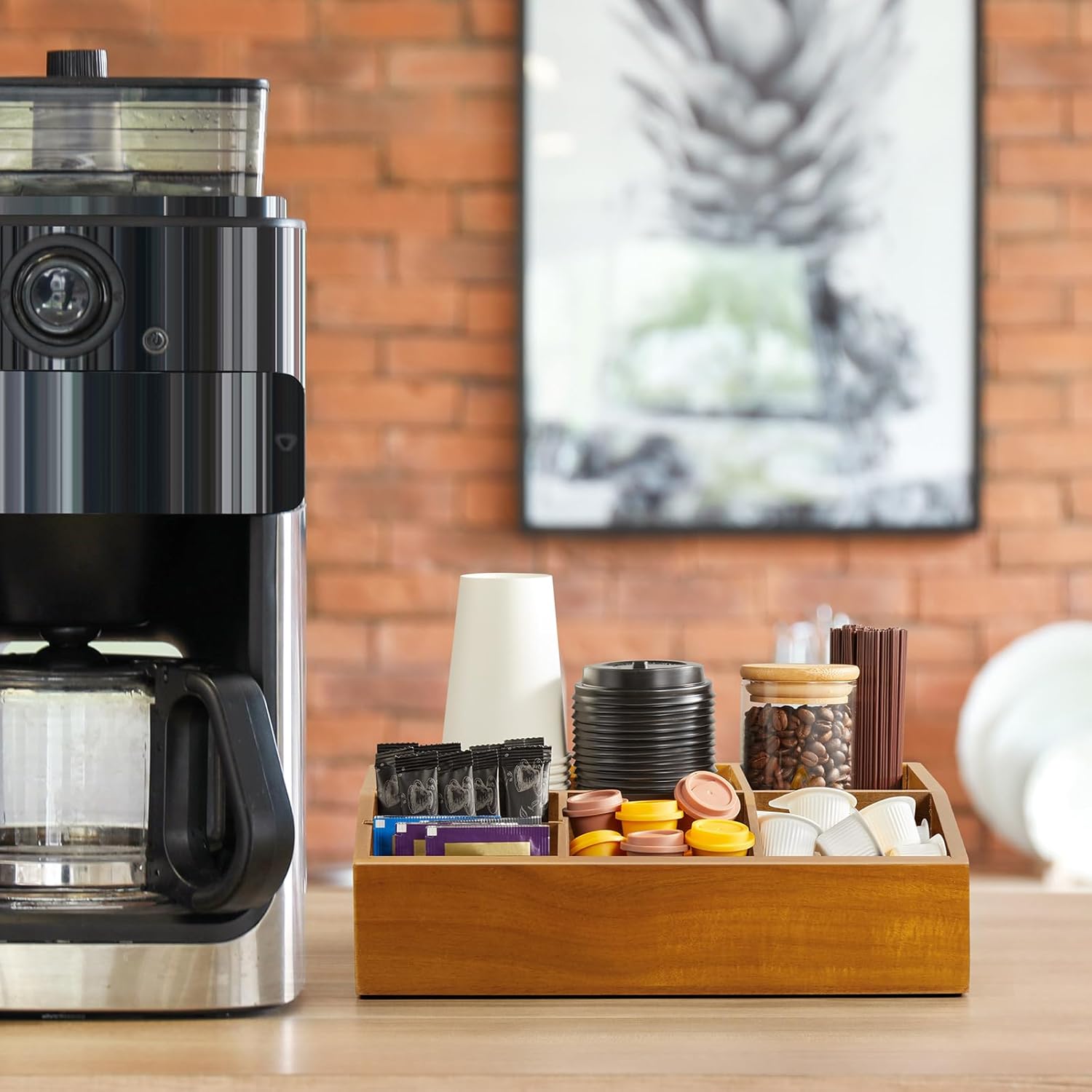 Acacia Wood Coffee Station Organizer for Countertop, Coffee Bar Accessories and Organizer, Pod Holder Storage Basket for K Cup Sugar Tea Bag