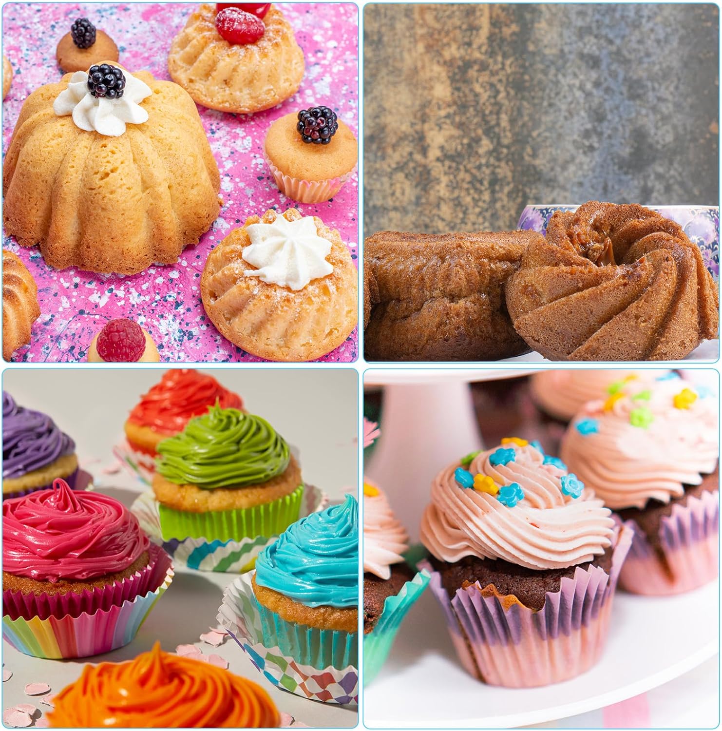 - [Multiple uses] The mini silicone muffin cups have a variety of uses. They are suitable for baking muffins, cupcakes, donuts, chocolate, pudding, mousse, etc. It can also be utilized as egg tart molds and pudding molds. It is suitable for daily, gatherings, parties and other occasions