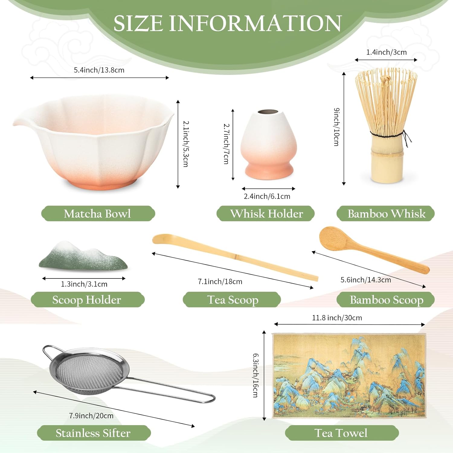 - 【Complete Matcha Making Kit】 This matcha set for matcha enthusiasts includes everything needed to craft authentic matcha: lead-Free Ceramic Bowl*1, Bamboo Whisk*1, Bamboo Scoops*2, Stainless Steel Sifter*1, Scoop Holder*1, Tea Towel*1, Whisk Holder*1—all exquisitely packaged for secure delivery. Featuring detailed brewing instructions printed on the packaging, these meticulously crafted tools empower both matcha starter and connoisseurs to effortlessly prepare perfect matcha tea every time.