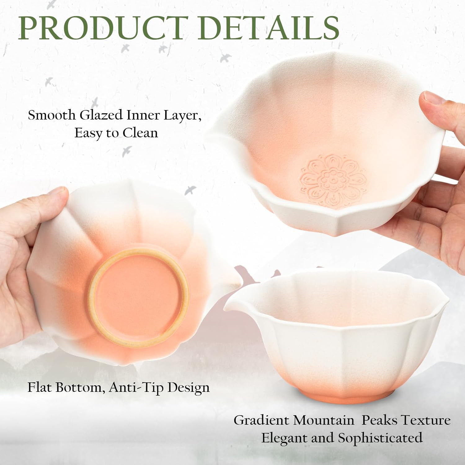 - 【Pink Matcha Whisk Set】 Inspired by beautiful cherry blossoms, this pink matcha set whisk and bowl features an elegantly crafted, flower-shaped matcha bowl with a spout, finished in a stunning gradient pink for an artistic touch; the matcha bowl's interior base is etched with a cherry blossom pattern, enhancing both beauty and functionality by providing a textured surface that increases friction to help whisk your matcha powder into a luxuriously rich froth—Blends beauty and practicality to elevate your matcha ritual.