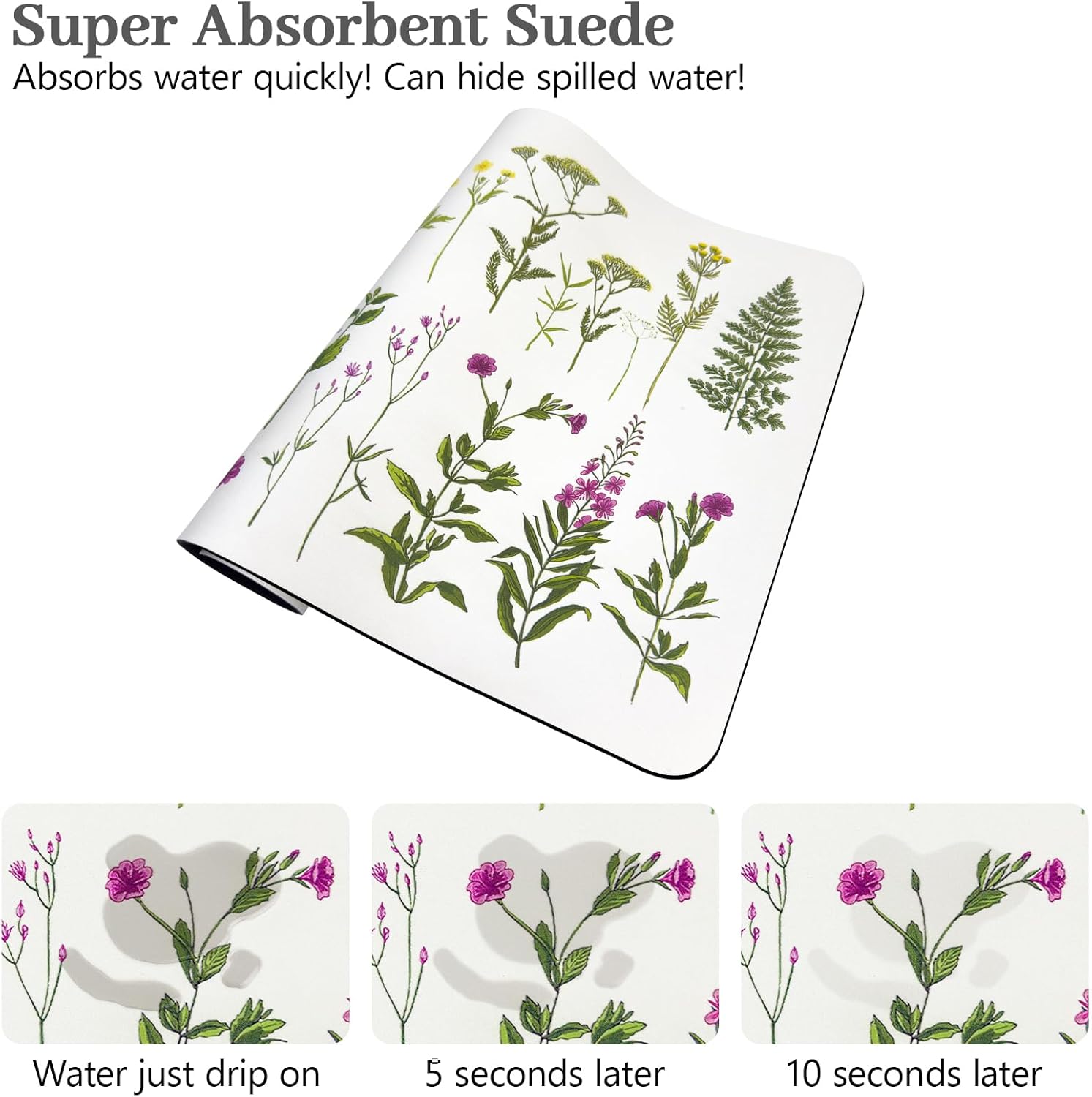 Bloss Dish Drying Mat, Multiple Usage Coffee Bar Mat, Kitchen Counter Mat, Absorbent Hide Stain Rubber Backed Dish Drying Pad(16.1"x24.1", 2-Row Flower)