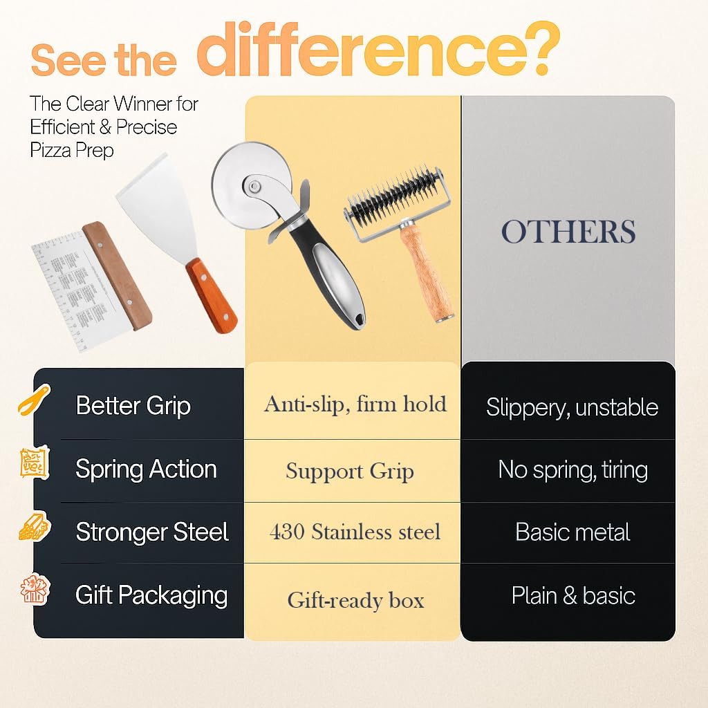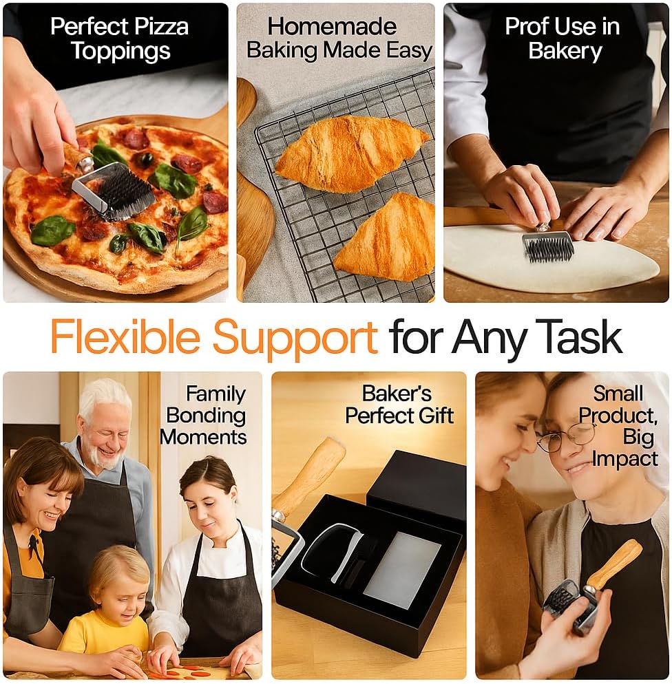 4 PCS Lattice cutter pastry tool roller with bench scraper and pizza cutter – stainless steel wood handle for pie top crust rolling, puff pastry, sourdough, bread, kitchen tools