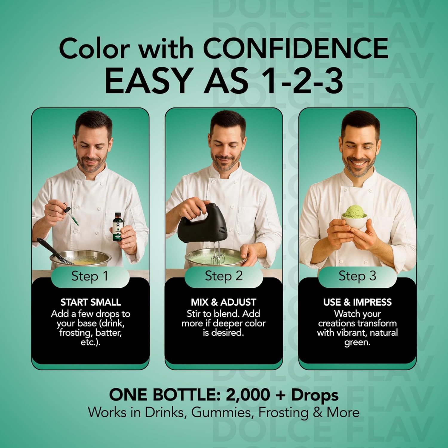 Dolce Flav Natural Green Food Coloring – 2 oz Vibrant Plant-Based Color from Green Apple | Water-Soluble Liquid Dye for Baking, Drinks & Frostings | Graduated Dropper Included | No Artificial Dyes | Kosher | Made in USA