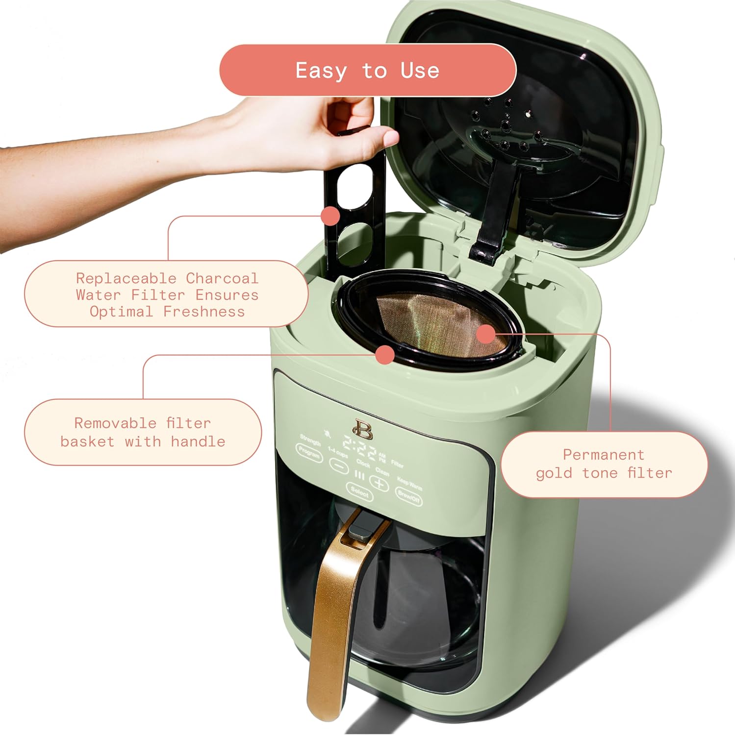 Beautiful Coffee Maker, 14-Cup, Touch Display, Programmable, 1200W, Stainless Steel, Keep Warm, 24h Timer dishwasher-safe (Sage Green)