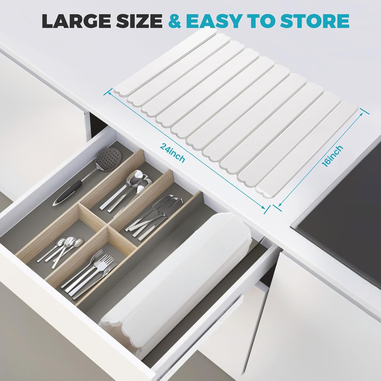 - Collapsible and Space-Saving: Measuring 24x16 when unfolded, this collapsible stone drying mat offers ample space for your dishes. When not in use, easily store it in drawers or kitchen cabinets, maximizing your kitchen's organization