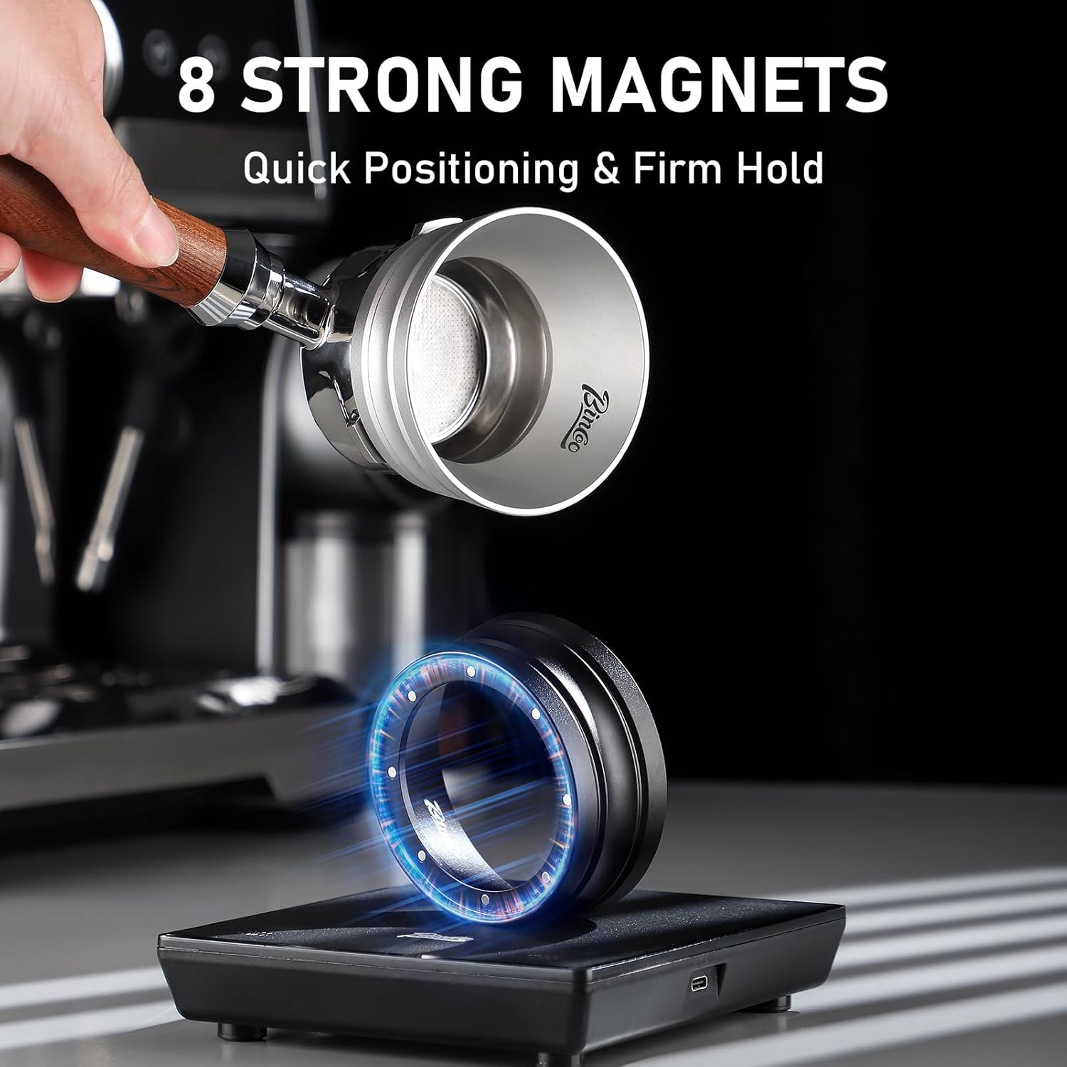 - Strong Magnetic Attachment – Built with 8 evenly distributed strong magnets for quick positioning and firm adsorption. Securely attaches to the portafilter and stays stable without slipping or falling, even when flipped.