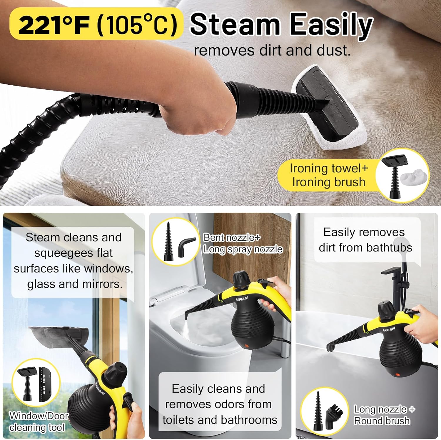 Handheld Steam Cleaner, Steamer for Cleaning, Multipurpose Portable Steam Cleaners for Home Use with Safety Lock and 10 Accessory Kit to Remove Grime, Grease, and More, Save Time and Effort