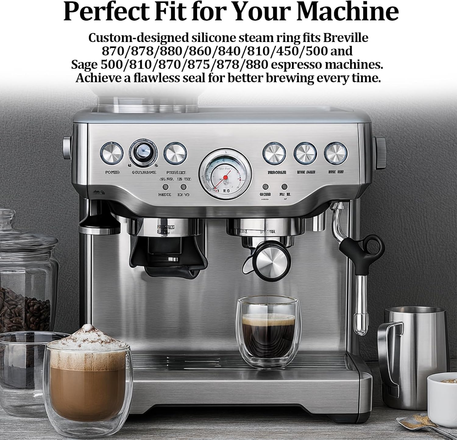 - Perfect Fit for Breville & Sage Models:Custom-designed silicone steam ring fits Breville 870/878/880/860/840/810/450/500 and Sage 500/810/870/875/878/880 espresso machines. Achieve a flawless seal for better brewing every time.