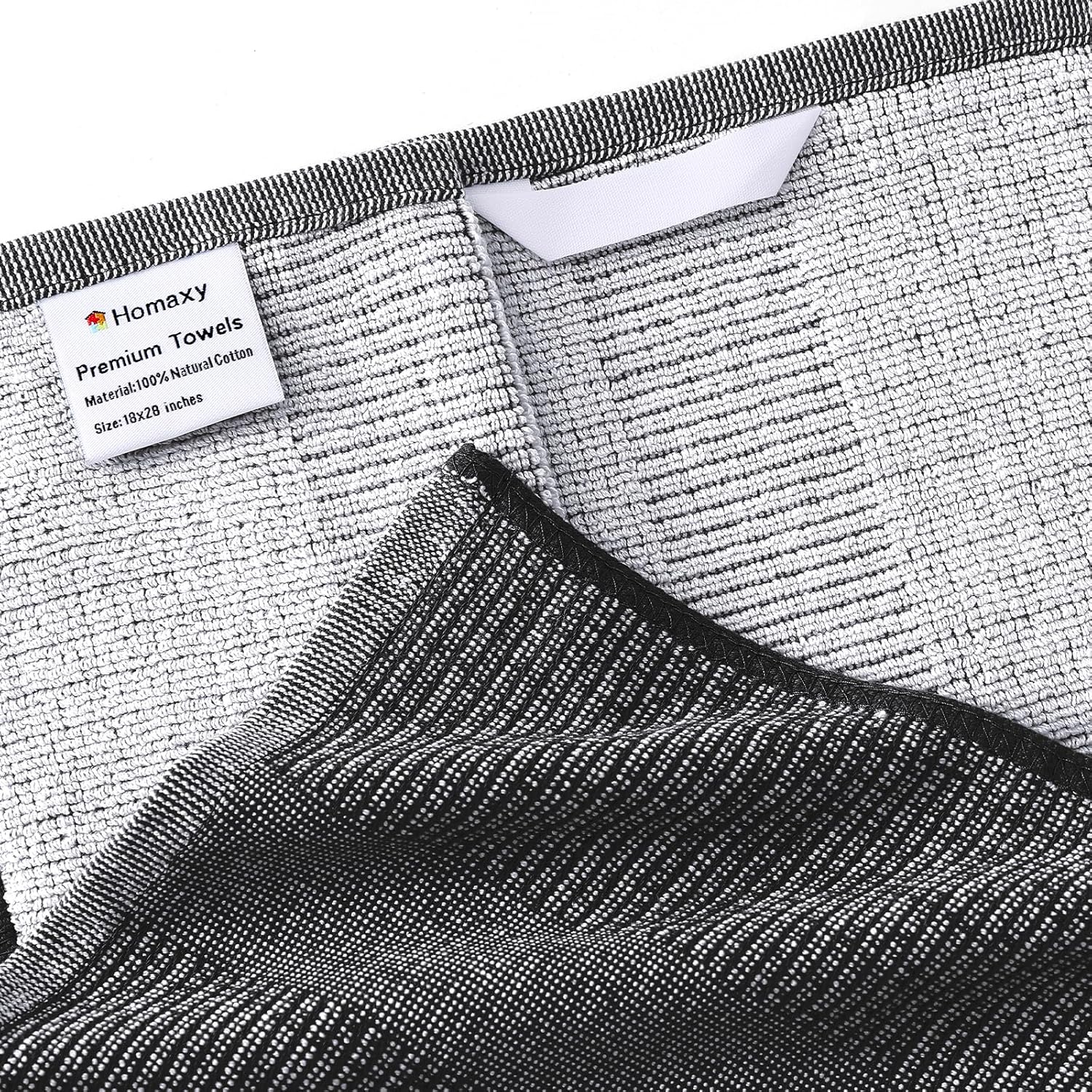 Homaxy Premium Kitchen Towels(18”x 28”, 12 Pack), Large Cotton Kitchen Hand Towels, Flat and Terry Dish Towels, 380 GSM Highly Absorbent Tea Towel Set with Hanging Loop, Black