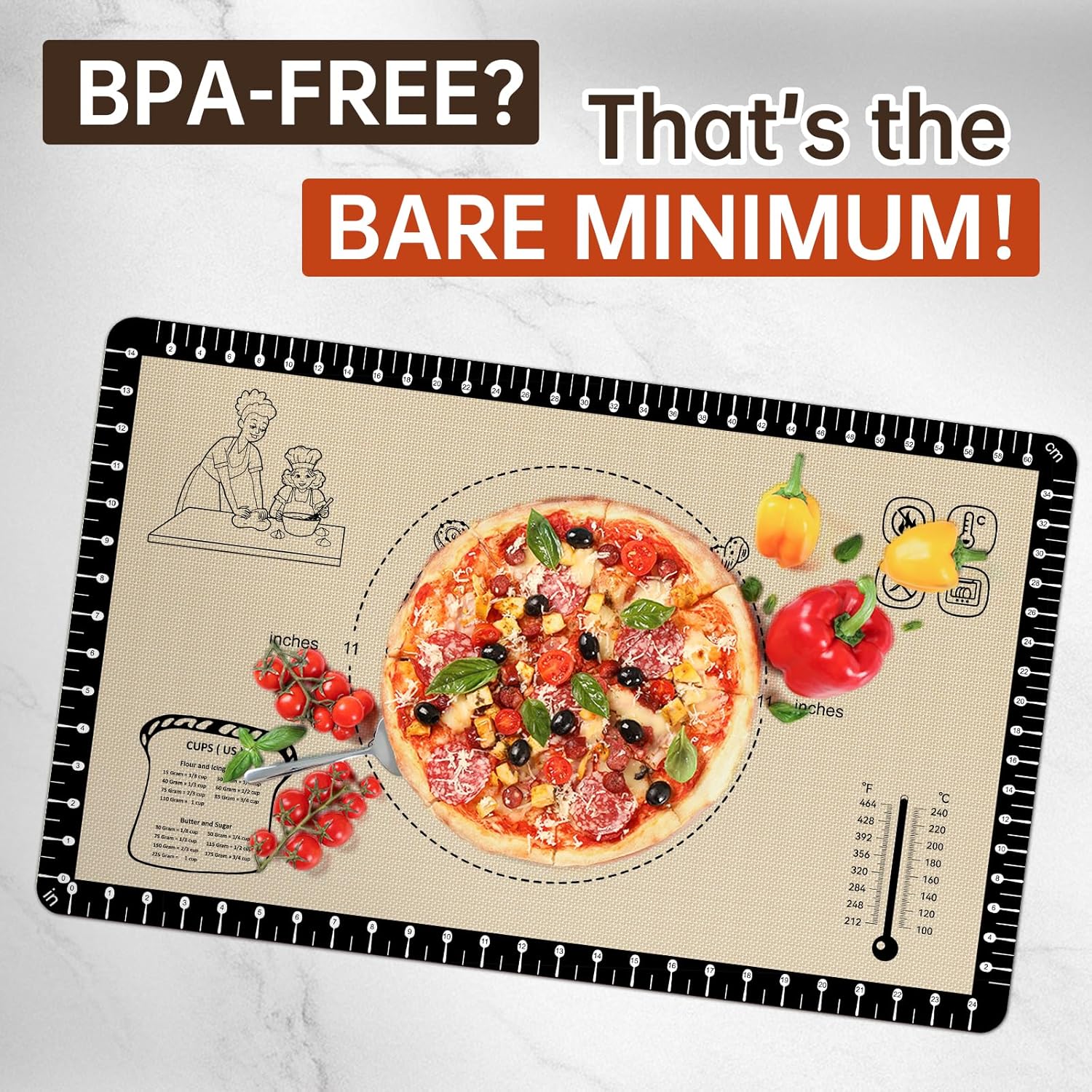 - ใ ๐ฟ ๐๐ฎ๐ฅ๐ญ๐ข-๐ฉ๐ฎ๐ซ๐ฉ๐จ๐ฌ๐ & ๐๐๐๐ญ ๐๐๐ฌ๐ข๐ฌ๐ญ๐๐ง๐ญใ๏ผChef-approved silicone Cooking mat works on ๐๐จ๐ฎ๐ง๐ญ๐๐ซ๐ญ๐จ๐ฉ๐ฌ, ๐ฆ๐๐ซ๐๐ฅ๐, ๐จ๐ซ ๐๐ฏ๐๐ง ๐๐๐ ๐ ๐ซ๐ข๐ฅ๐ฅ๐ฌ (-40ยฐF to 480ยฐF). ๐๐๐ฉ๐ฅ๐๐๐ ๐ฉ๐๐ซ๐๐ก๐ฆ๐๐ง๐ญ ๐ฉ๐๐ฉ๐๐ซ & ๐ซ๐๐๐ฎ๐๐ ๐ฐ๐๐ฌ๐ญ๐โ๐ฌ๐๐ฏ๐๐ฌ $๐๐/๐ฒ๐๐๐ซ ๐จ๐ง ๐๐ข๐ฌ๐ฉ๐จ๐ฌ๐๐๐ฅ๐๐ฌ! It is easy to clean and dishwasher safe for this heat resistant and non slip sourdough silicone Bread mat.