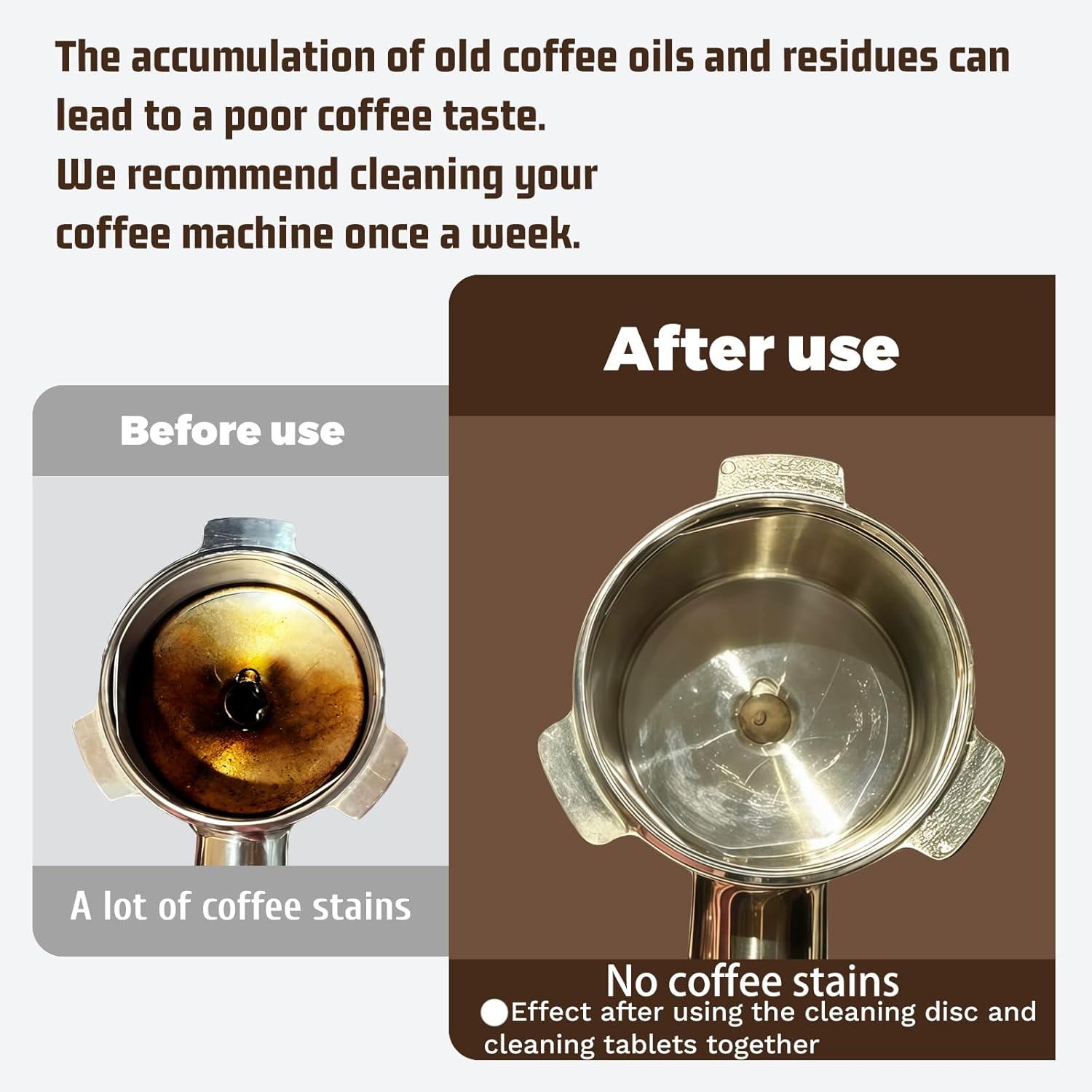 - Usage Tips For best results, use with cleaning tablets and descaling solution. This powerful combo removes mineral buildup, limescale, coffee oils, and old residues—keeping your machine running like new.