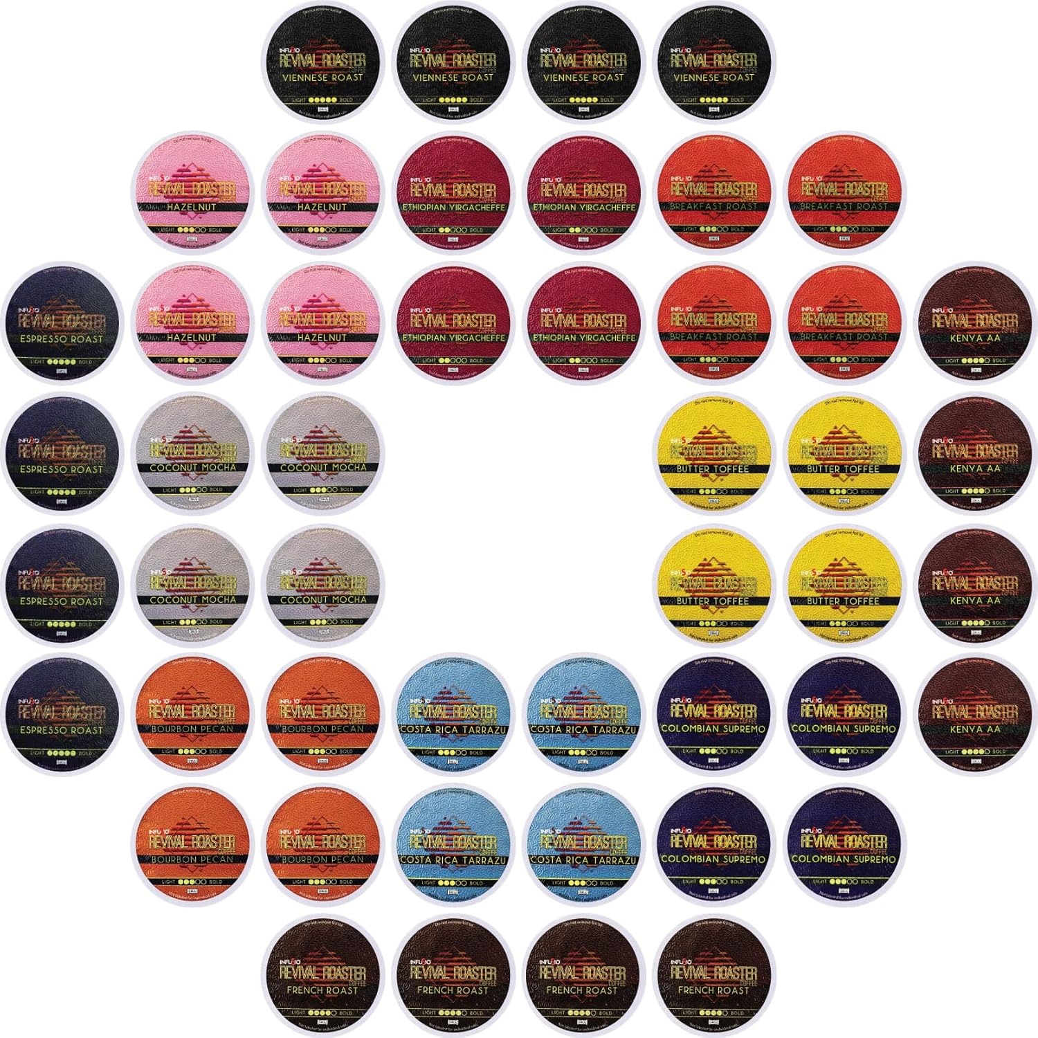 InfuSio Coffee Pods Variety Pack – 48 Count, 12 Crafted Medium & Dark Roast Blends and Artisan-Inspired Flavors Like Bourbon Pecan & Butter Toffee, Revival Roaster Collection, Compatible with Keurig 2.0 Brewers