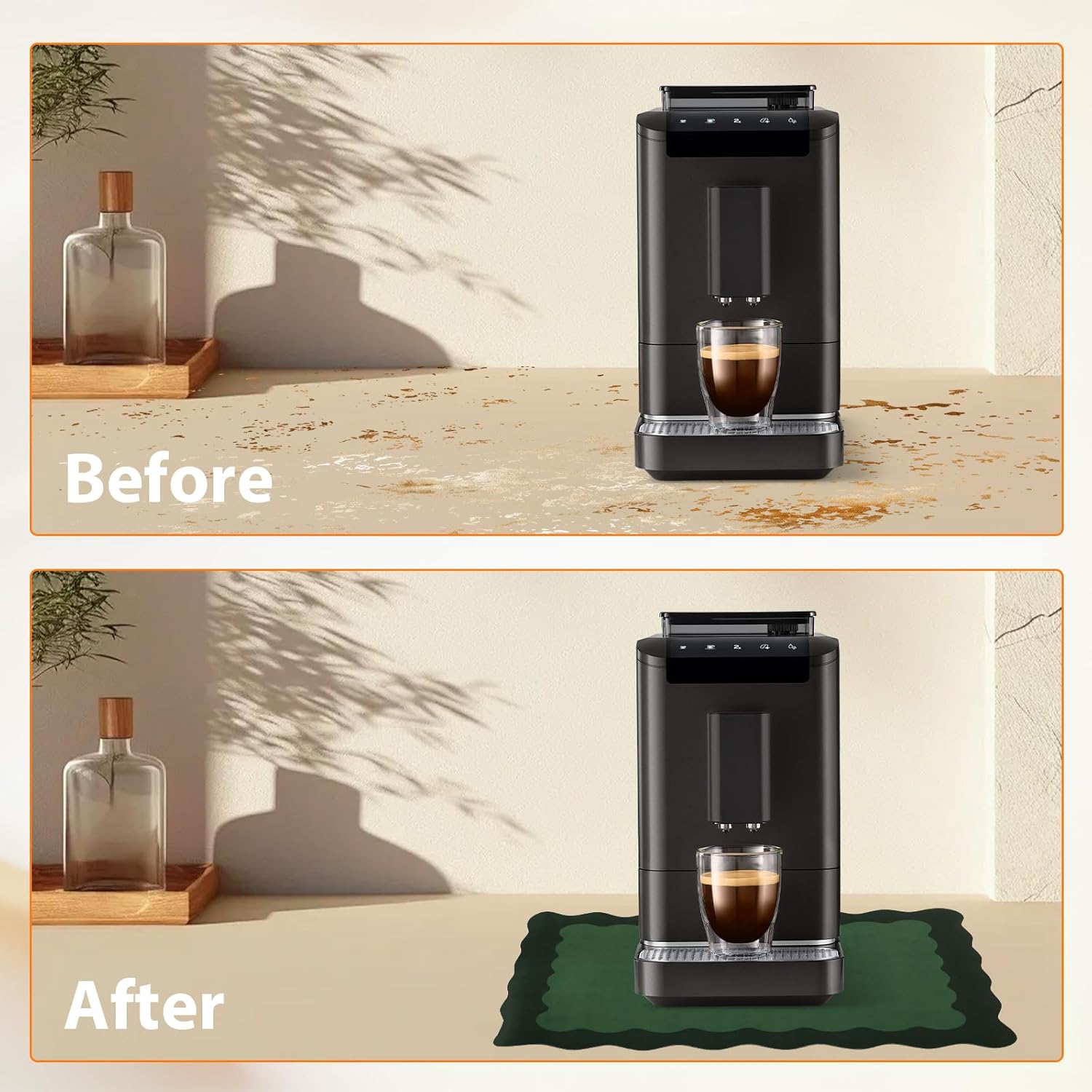 - Two Sizes: There are two sizes of coffee bar mat for your kitchen. 12"x 19" and 16"x24" suited for your kitchen counter, dish racks, coffee station and dining table and bathroom well