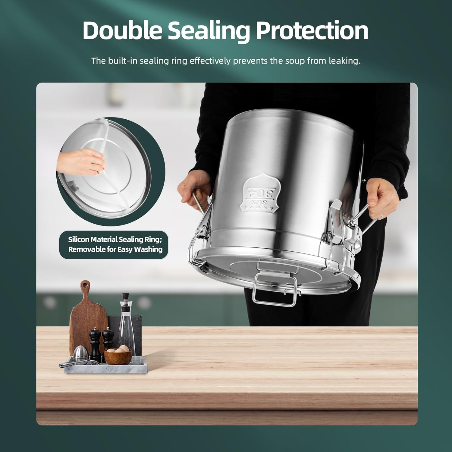 - Double Sealing Protection: Three strong sealing buckles firmly lock the bucket body and lid without gaps. The built-in non-leakage sealing ring is highly sealed and effectively prevents the soup from leaking