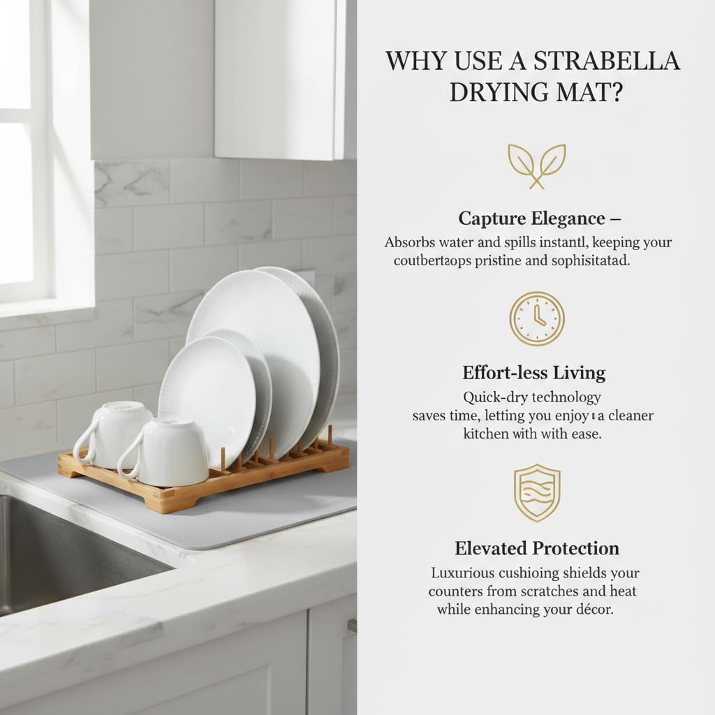 - EXCEPTIONAL ABSORBENCY: Experience the superior absorbent power of our Dish Drying Mat, designed to quickly soak up moisture from freshly washed dishes, ensuring a faster and more efficient drying process.