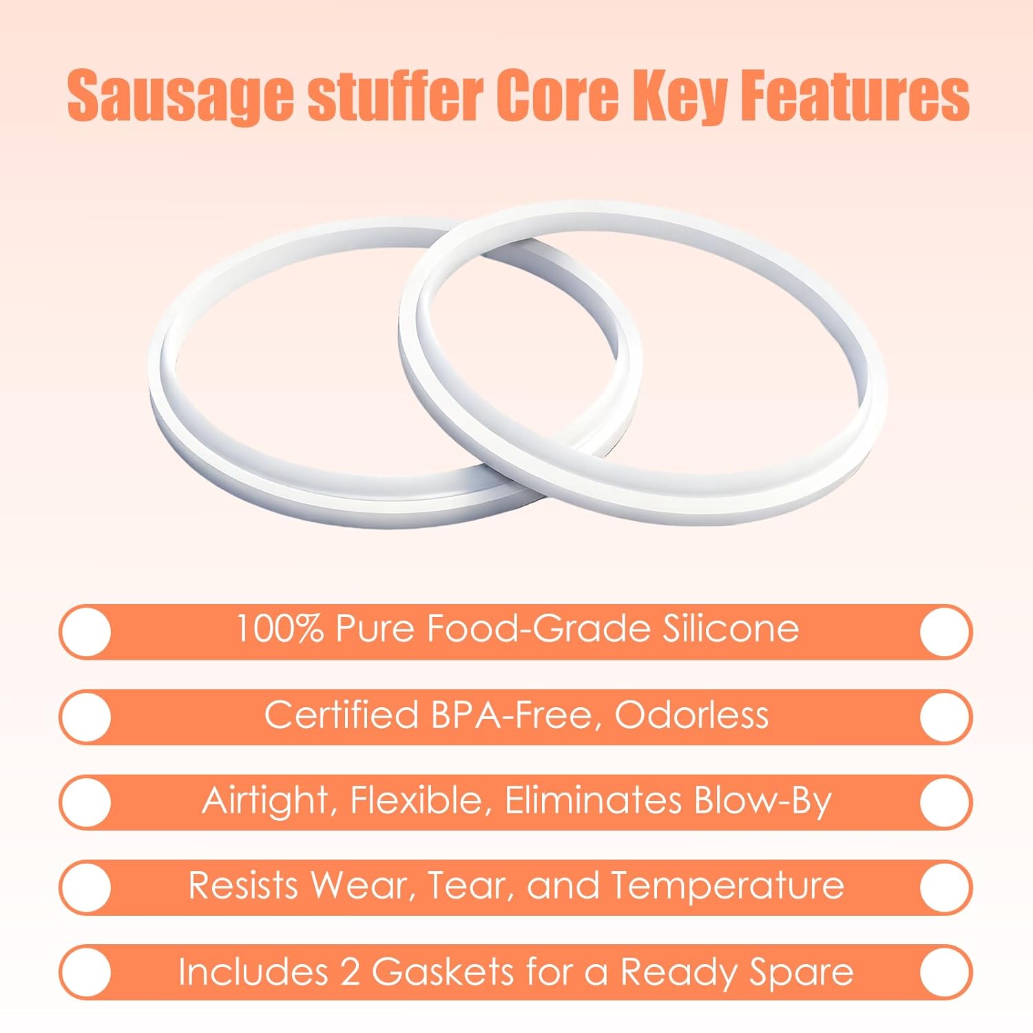 - 【2-PACK & FOOD-GRADE SILICONE】: Get double the value with two premium replacement gaskets. Crafted from 100% pure, BPA-free, and odorless silicone, ensuring your food stays safe and tastes pure. A smart investment to keep your Hakka sausage stuffer maker operating perfectly