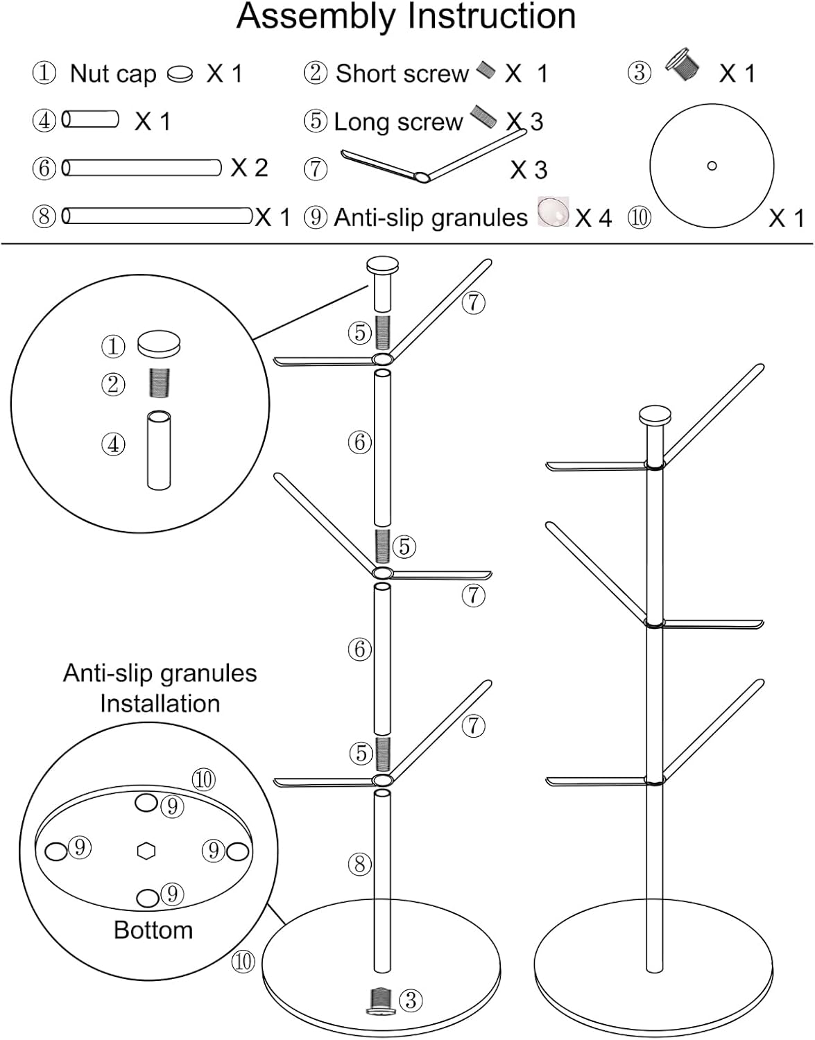- Quickly Easy to Assemble: Mug tree allows you to hang six cups, either square or circular. Coffee mug holder can be installed quickly and sturdy in the state of tightening screws. Coffee cup holder also easy to clean, easy to disassemble and store