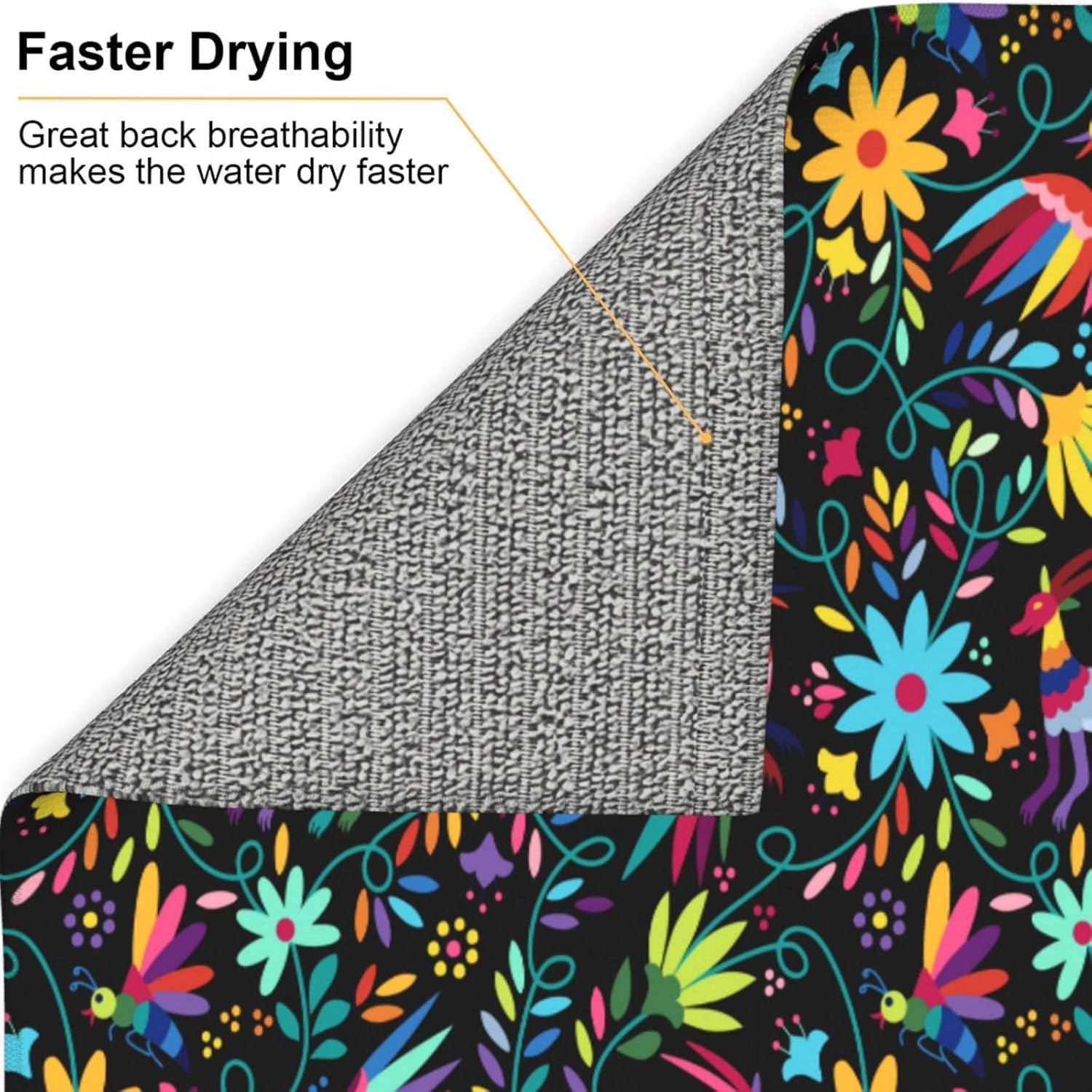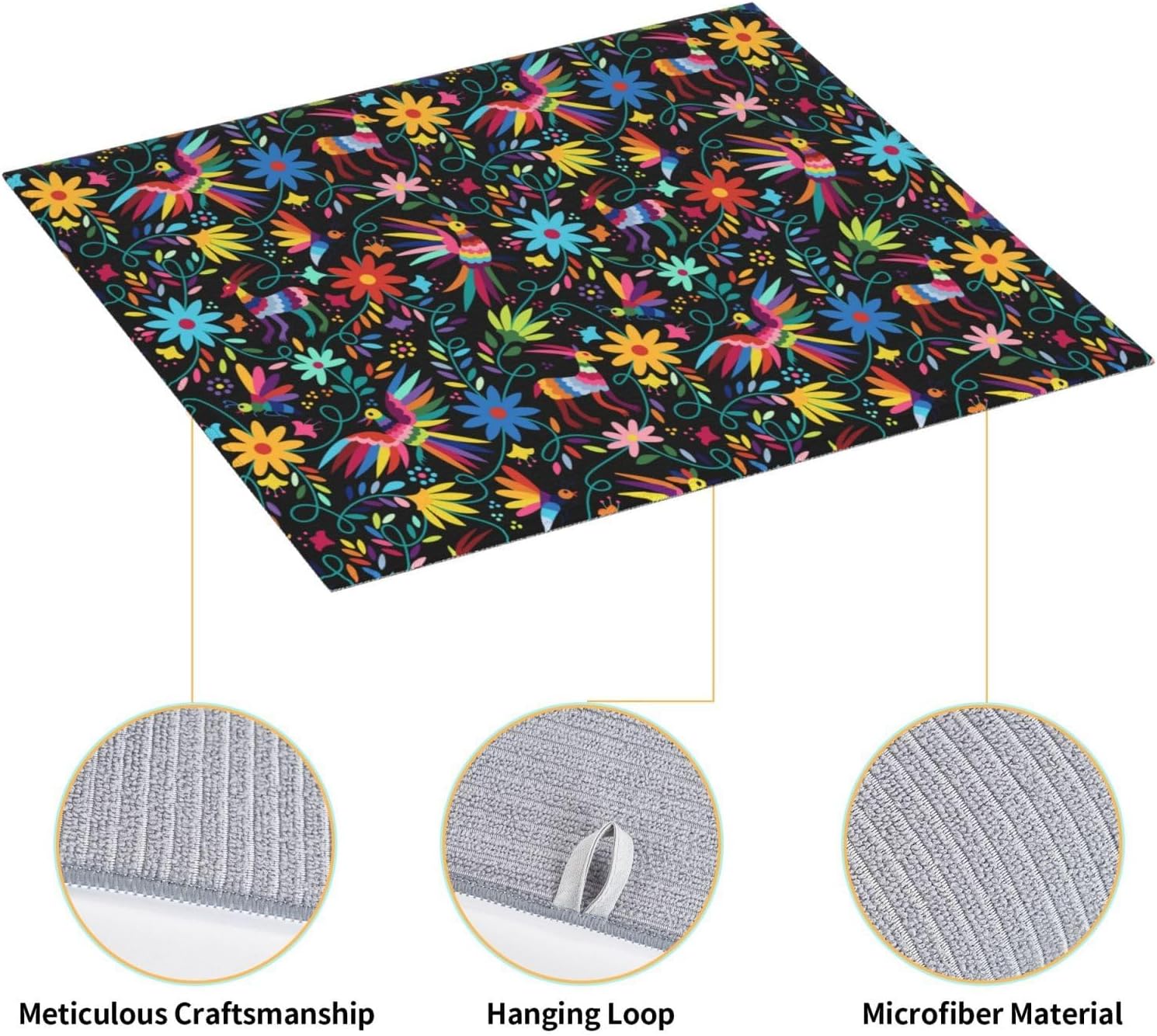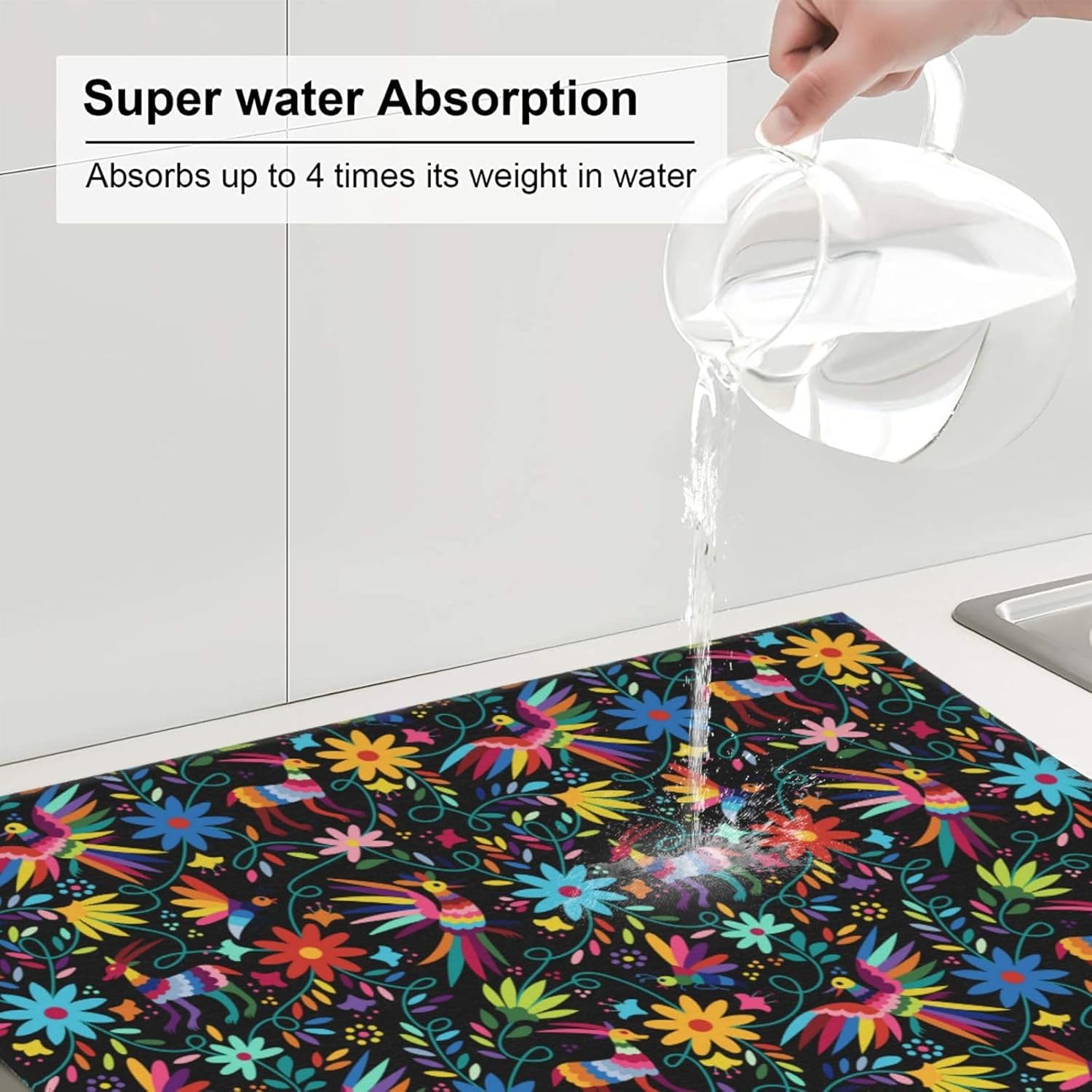 - Premium Microfiber Polyester Material: This Mexican colorful bird and floral dish drying mat is crafted from high-quality microfiber polyester, making it an absorbent dish drying mat that efficiently soaks up water, keeping your kitchen counter dry. As a microfiber dish drying mat, it ensures durability and long-lasting use, ideal as a dish drying pad for kitchen counter